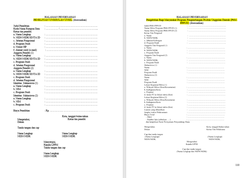 Dengan Hormat, Berikut kami sampaikan format pengesahan laporan penelitian dan pengabdian kepada masyarakat Internal Universitas Siliwangi tahun 2023 : Format Pengesahan Baru